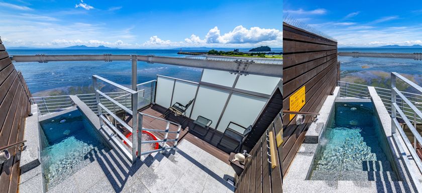 眼前に広がる有明海の開放感と心地よい風を感じながらリフレッシュできる露天ジャグジーバスが完備されており、ラグジュアリーな滞在をお楽しみいただけます。