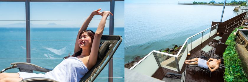 気泡の優しい刺激がカラダ全体を包み込む癒しの空間。目の前に広がる雄大な有明海を眺めながら疲れたカラダをほぐしてください。
