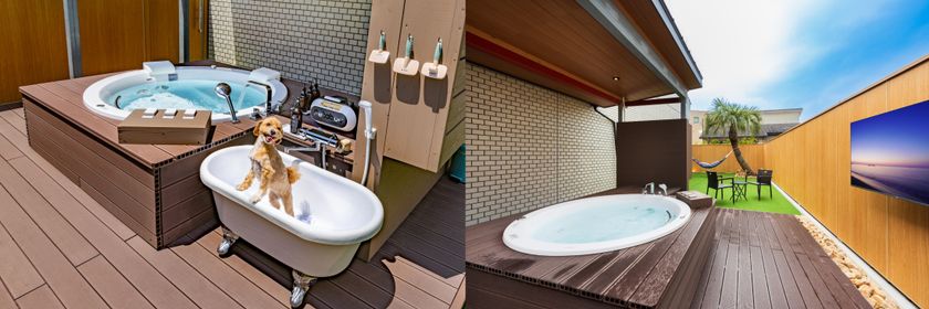 一棟貸切なのでプライベートも保たれ、愛犬と入浴もOK。