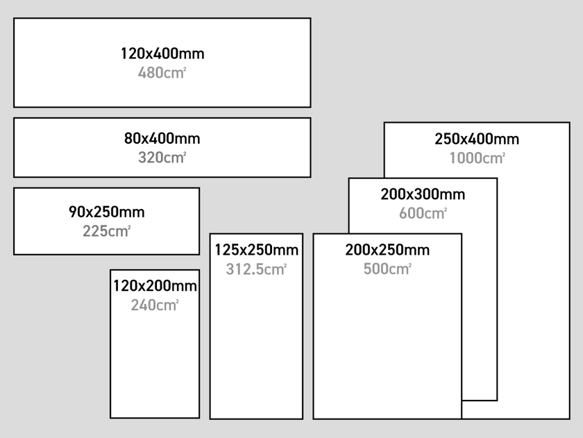 対応サイズ(本体): 90mm×250mm~250mm×400mm