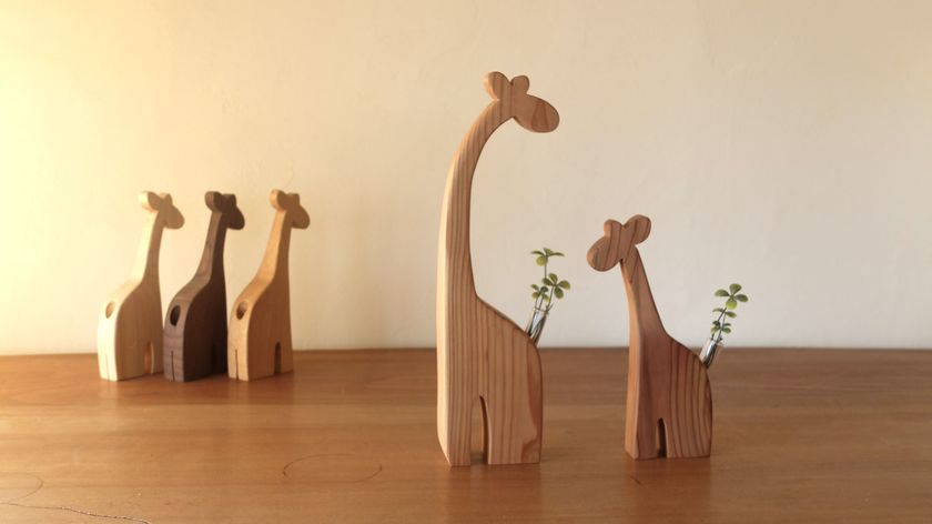 山武市に工房を構える「Studio Kirin」では、地元で長く育まれてきた県産ブランドの木材「サンブスギ」を使い、その軽くて柔らかな質感を生かしたインテリアを制作しています。テーブルや椅子などの家具から、器や弁当箱などの小物までアイテムはさまざま。工房名にもなっている"きりん"を象ったチャーミングな一輪挿しも人気です。丁寧な手仕事で仕上げられた作品には、見ているだけでほっとするような、木の温もりが宿っています。