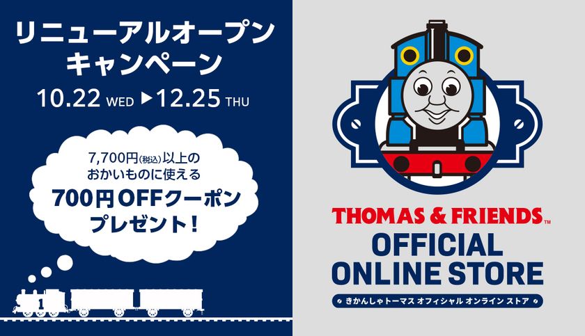 「きかんしゃトーマス公式オンラインストア」では、リニューアルを記念してお買い物にすぐにご利用いただける700円OFFクーポンを配布中です。