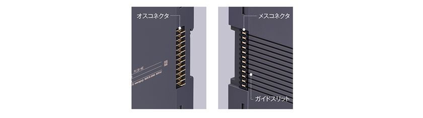 入出力カードは振動や衝撃に強い内部通信バス用コネクタで確実に接続されます。