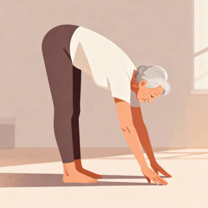 伸ばした両手がトレーナーに引っ張られているかのように前屈の体の伸びを体験できます。
