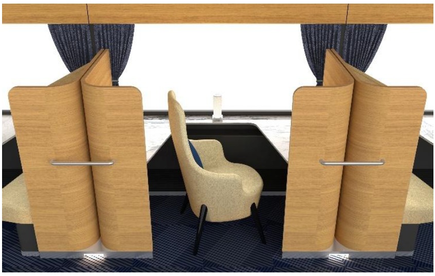 ・1人席は、進行方向によって向きを変えられるように椅子は固定せず、前後にテーブルを設けています。