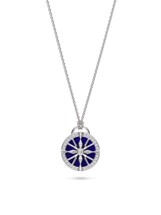 未来を照らすお守りのような存在として日常を華やかに彩るコレクションに、新たに加わったのはラピスラズリを主役にしたペンダント。深遠なブルーの色彩美と8本の矢に共鳴するダイアモンドの輝きは、身に着ける人に幸運を呼び寄せます。