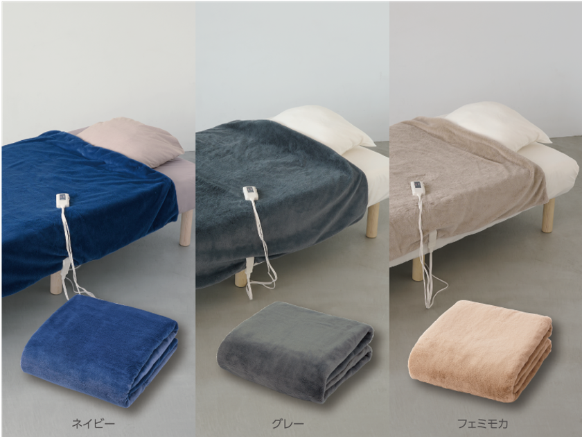 極上シルキータッチで「足ポカ快眠」を実現!「プレミアムフェイクファー電気毛布」にネイビーが新登場