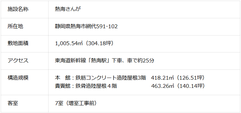 本物件は、集客力の高い熱海温泉エリアに位置し、相模湾を一望する全室オーシャンビューという圧倒的な眺望を誇る、全室客室露天風呂付きの旅館となります。