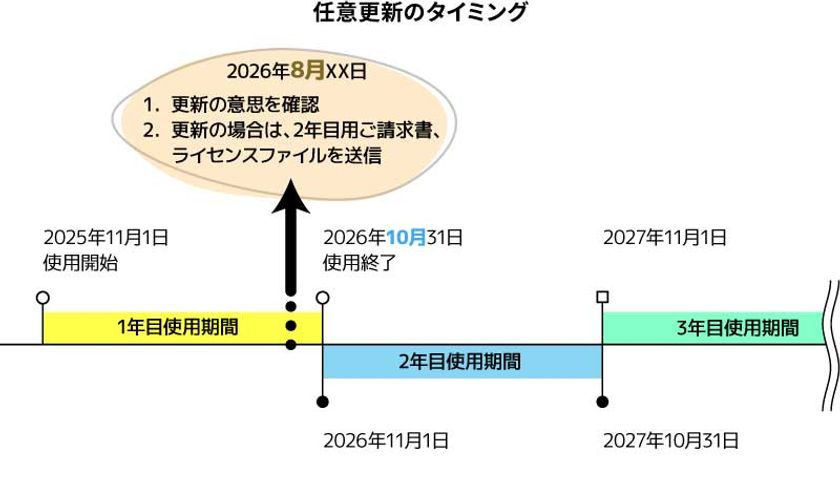 『サブスクリプション ライセンス』は、年額にてライセンスと基本保守をセットにしたライセンス形態です。当面は一部の製品のみを対象とし、当社と直接お取引のできるお客様のみでの販売(直販)となります。