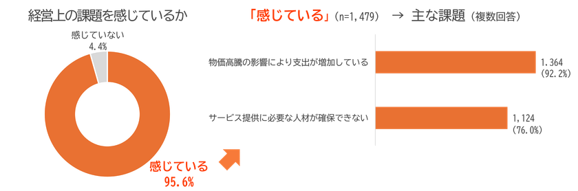 回答した障害福祉事業所の95.6%が経営上の課題を感じていることがわかりました。