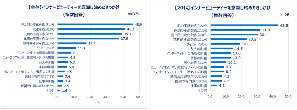 3.インナービューティーを意識したきっかけ「見た目の変化を感じたから」「老化を感じたから」