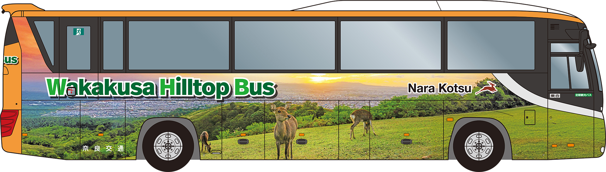 3.運行車両 「Wakakusa Hilltop Bus」専用のラッピングバスで運行