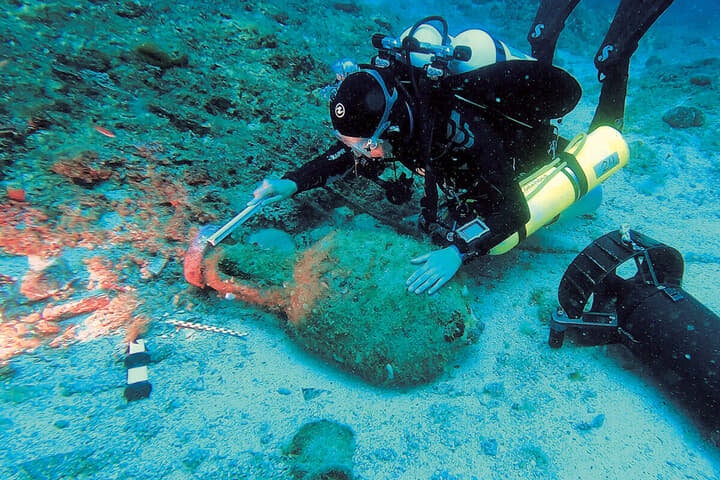 紀元前1世紀のものとされる沈没船は1900年、エーゲ海に臨むギリシャのアンティキティラ島沖で発見されていた。新発見を可能にしたのは長時間かつ深く潜れる最新鋭の潜水装備だ。水中ドローンによって発掘の様子を追跡・記録し、リアルタイムで調査できるようになった。